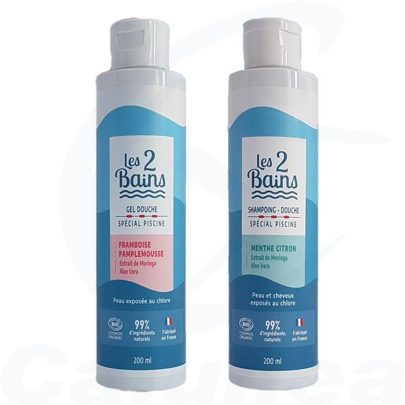 Le shampoing-douche spécial piscine Les 2 Bains est spécifiquement formulé pour les peaux et cheveux exposés au chlore. Enrichi en extrait de Moringa reconnu pour ses vertus dépolluantes et détoxifiantes et en Aloe Vera pour ses propriétés apaisantes et hydratantes, ce shampoing-douche atténue les effets indésirables du chlore (odeur, sécheresse de la peau et des cheveux).