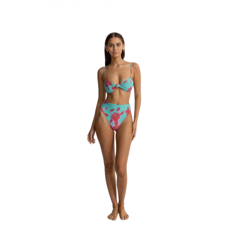Confectionné dans un tissu écologique de haute qualité et confortable qui vous gardera confiant et élégant toute la journée, ce bikini présente un imprimé rose rouge frappant sur fond de bleu sarcelle vif.